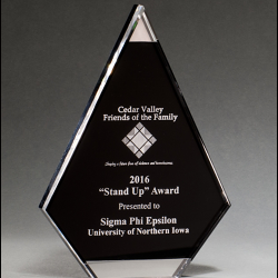 Apex Series 3/4" thick acrylic award on acrylic base.This award comes with your special message. Ideal as recognition awards to put on display at work or at home. With a sizeable eng..