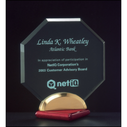 Octagon Series 3/8" thick acrylic award on a rosewood stained piano finish base with gold metal accents .This award comes with your special message. Ideal as recognition awards to pu..
